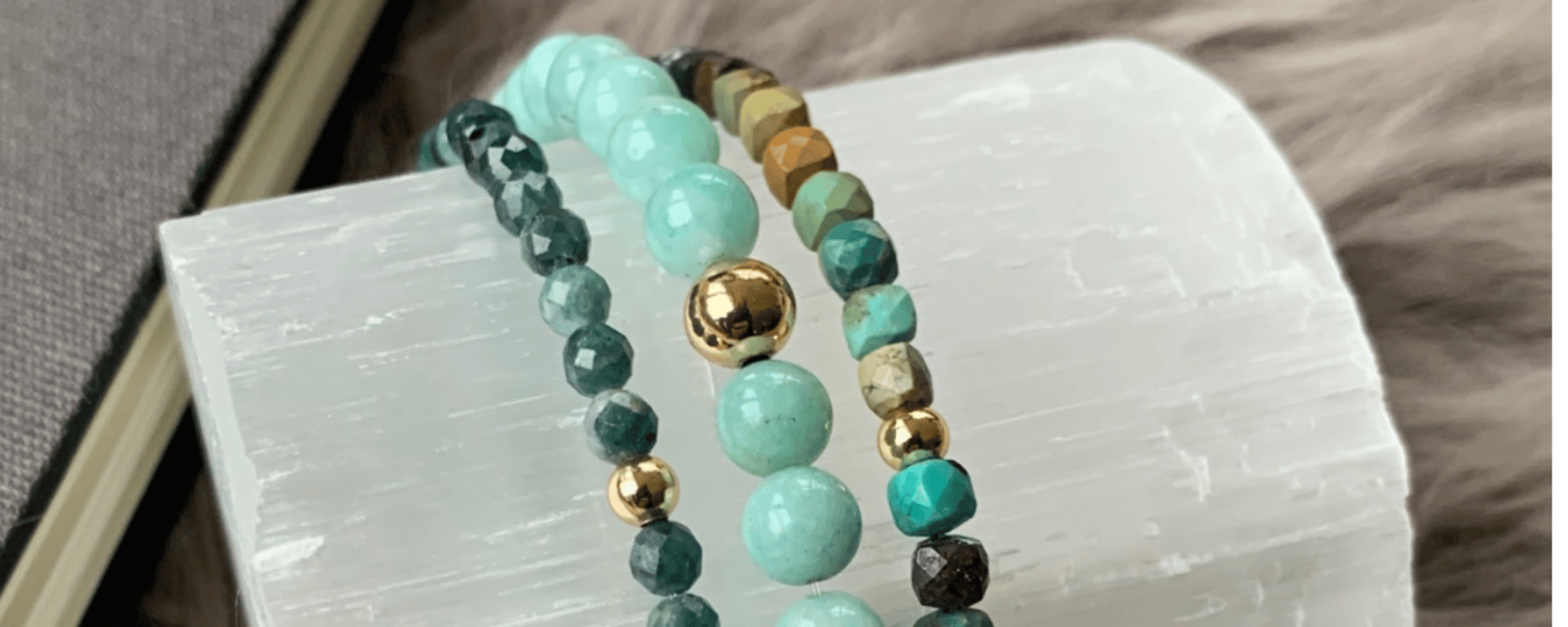 Her finder du et stort udvalg af håndlavede armbånd, øreringe og halskæder med udvalgte sten og krystaller.